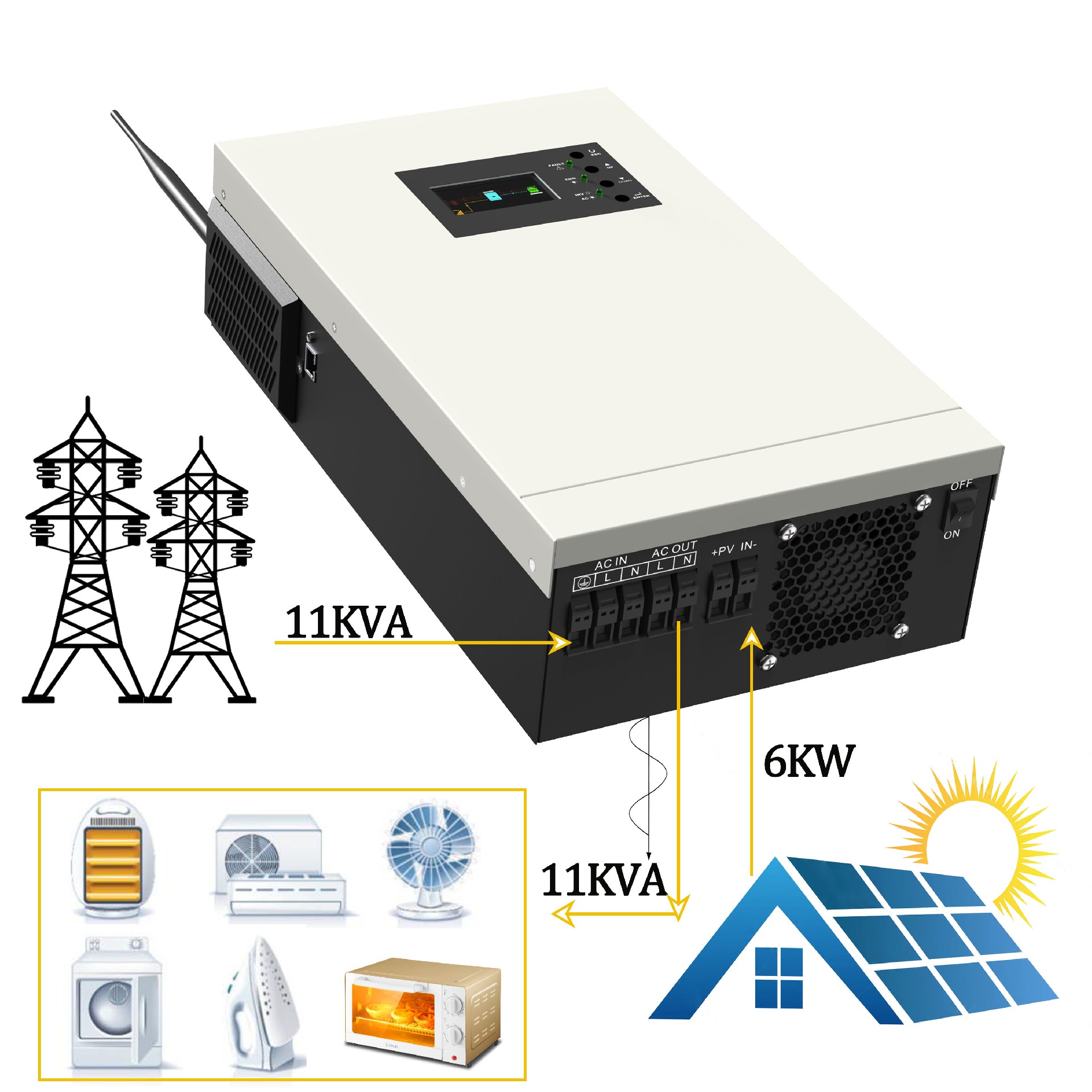 Solar is priority power source, grid make up for shortfall, in this way. In this way, solar inverter maximally abstract solar power as much as possible.